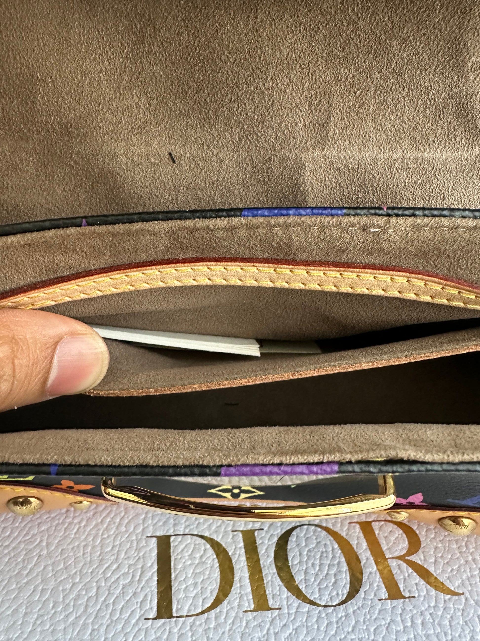 Een zeldzame Louis Vuitton Marilyn tas uit de iconische Multicolor collectie. Dit prachtige stuk heeft het kenmerkende zwarte Multicolor monogram canvas met kleurrijke LV-logo's, gecombineerd met natuurlijk Vachetta leer versierd met goudkleurige studs.