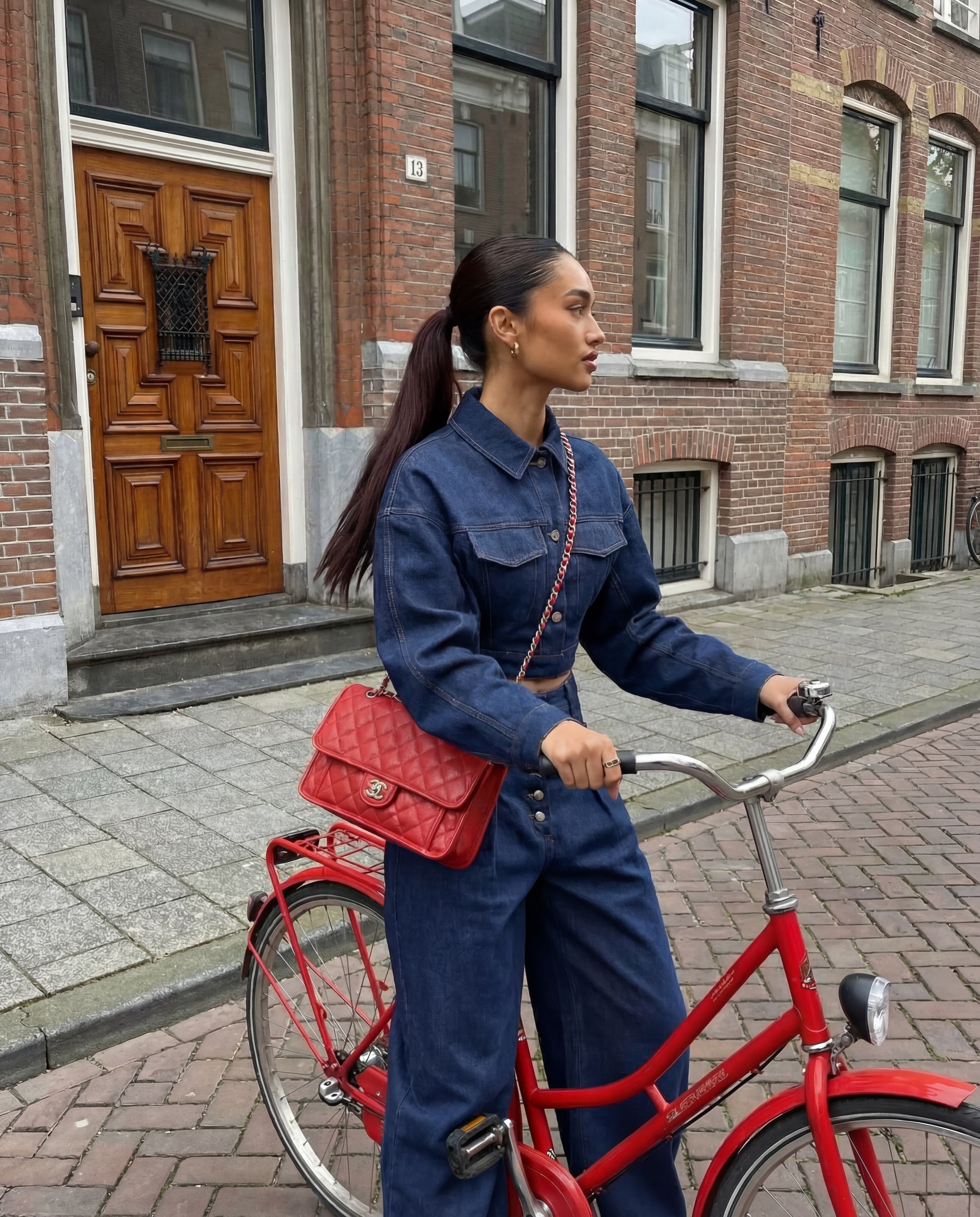 De verstelbare band kan zowel enkel als dubbel gedragen worden, waardoor de tas perfect te stylen is als schoudertas of crossbody. Binnenin vind je een stoffen voering met een praktisch binnenvak. Een statement piece voor elke gelegenheid.