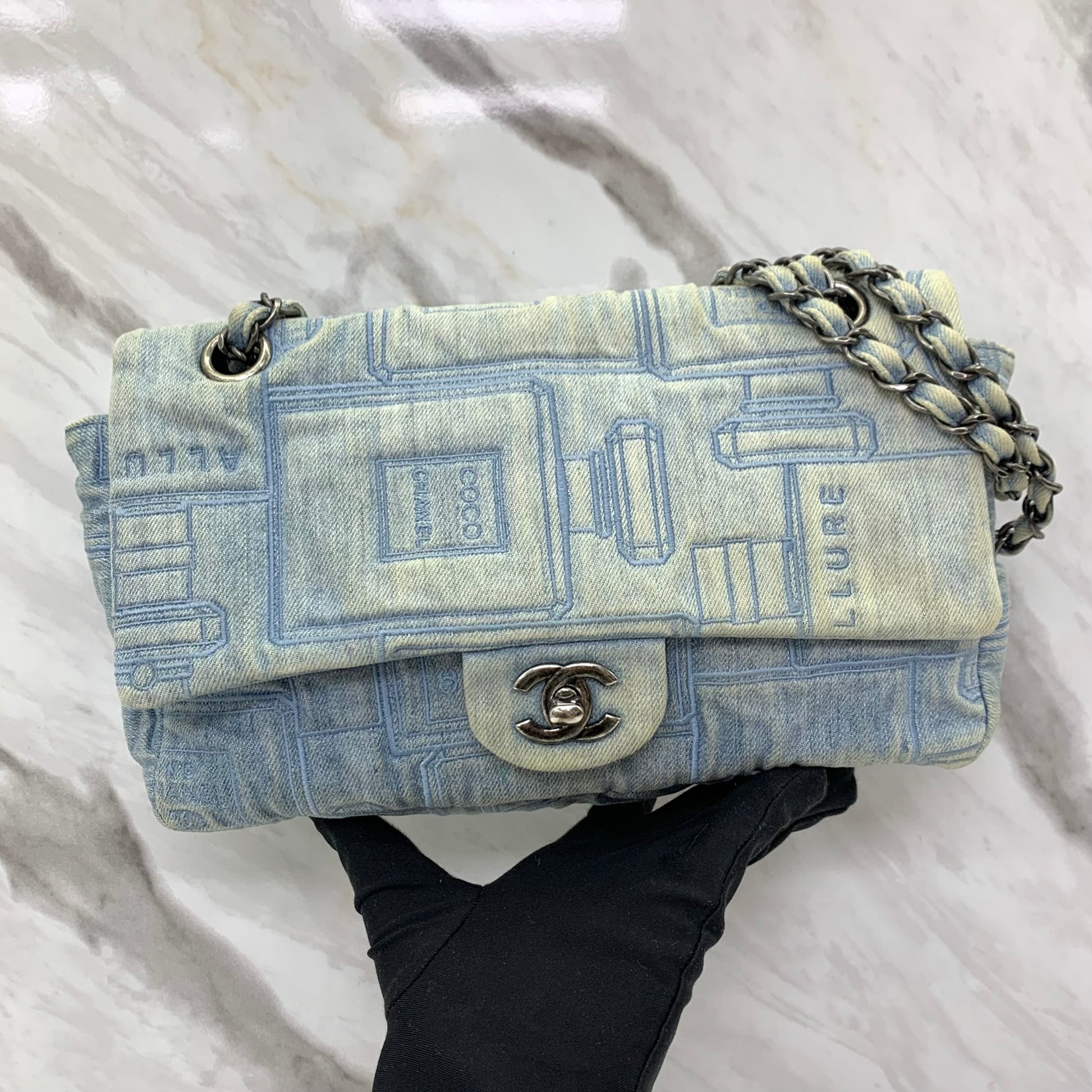 Chanel Denim Perfume Embroidered Classic Flap Bag