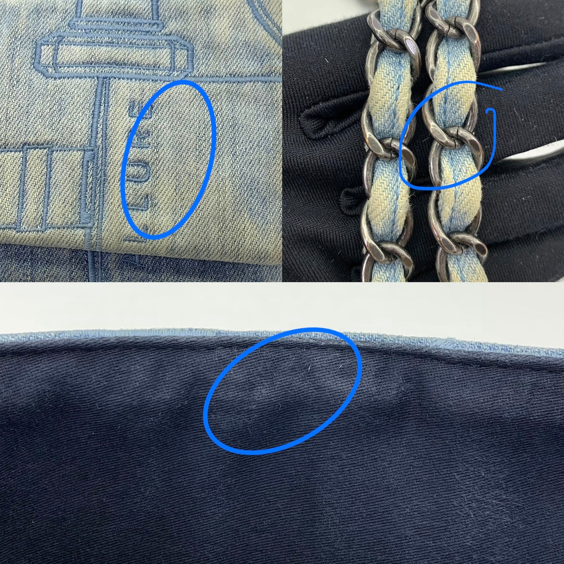 De tas is voorzien van het klassieke CC draaislot, zilverkleurige hardware en een denim doorvlochten kettingband. Aan de achterzijde bevindt zich een steekzak. Het interieur biedt een open vak en een ritsvak. Vervaardigd in Frankrijk.