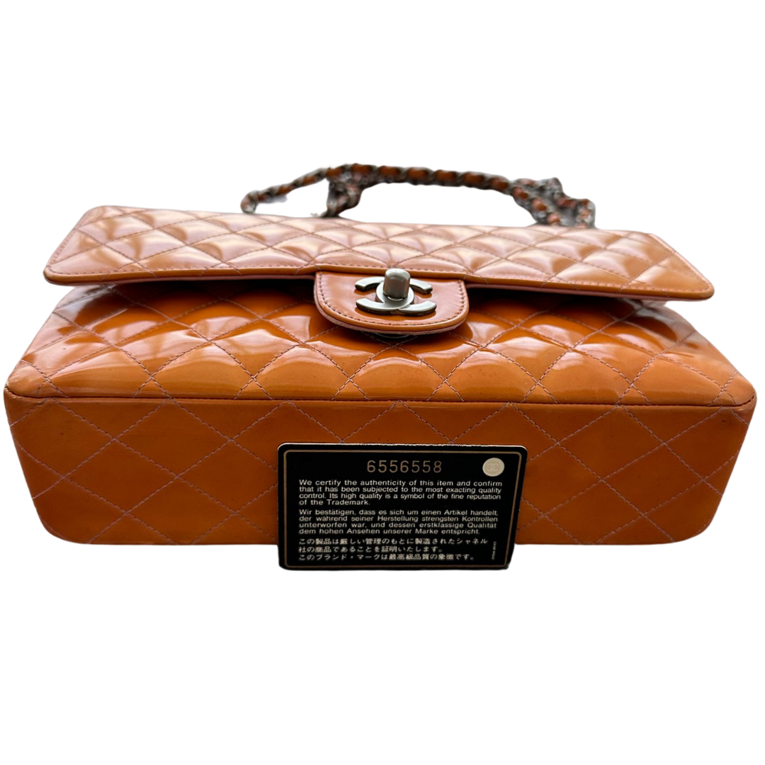 (Pre-owned) Timeless/Classique Chanel Handbag in Orange Quilted Patent leather with Silver Hardware