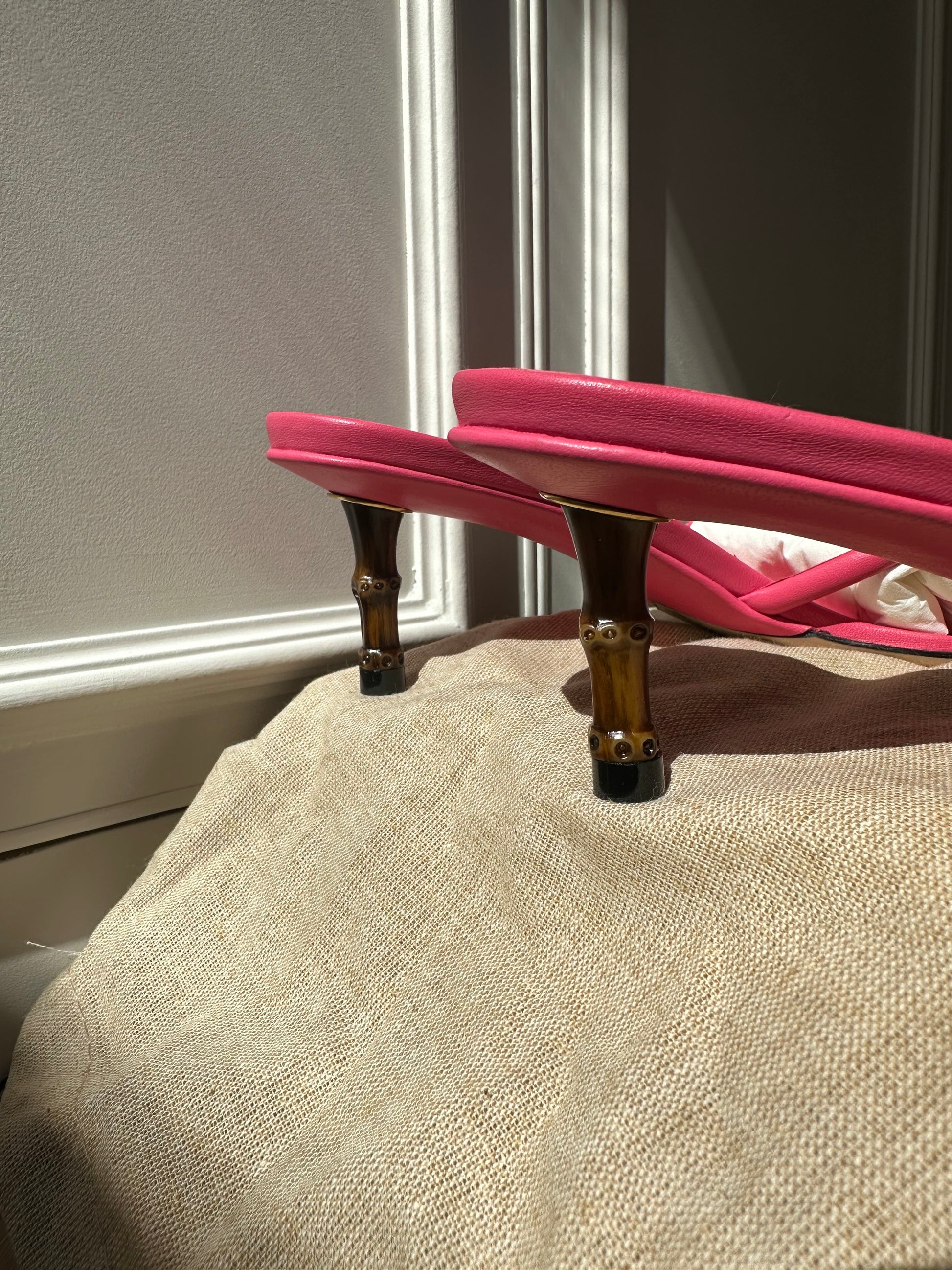 GUCCI Knotted Sandal with Bamboo Heel, size EU37