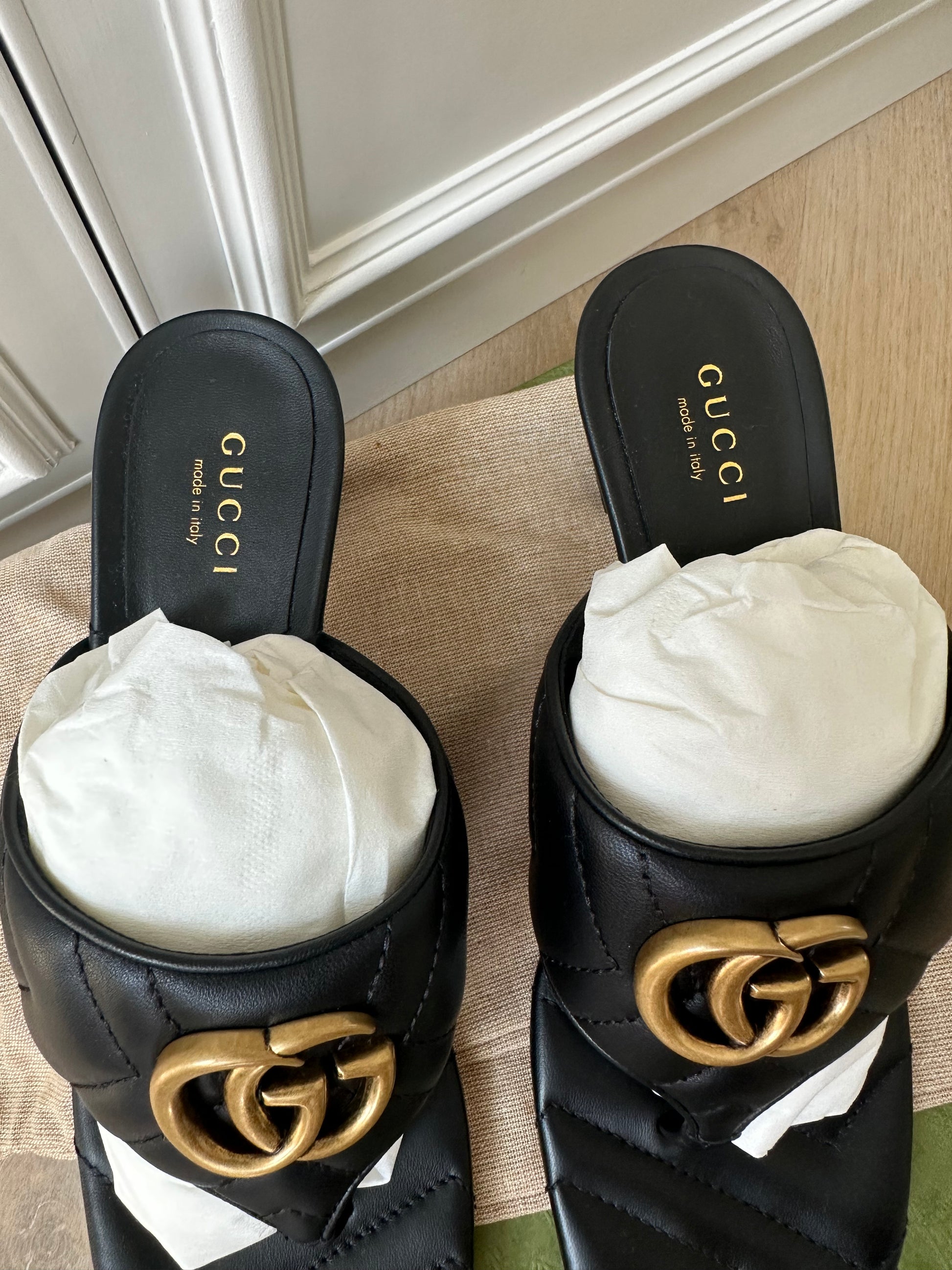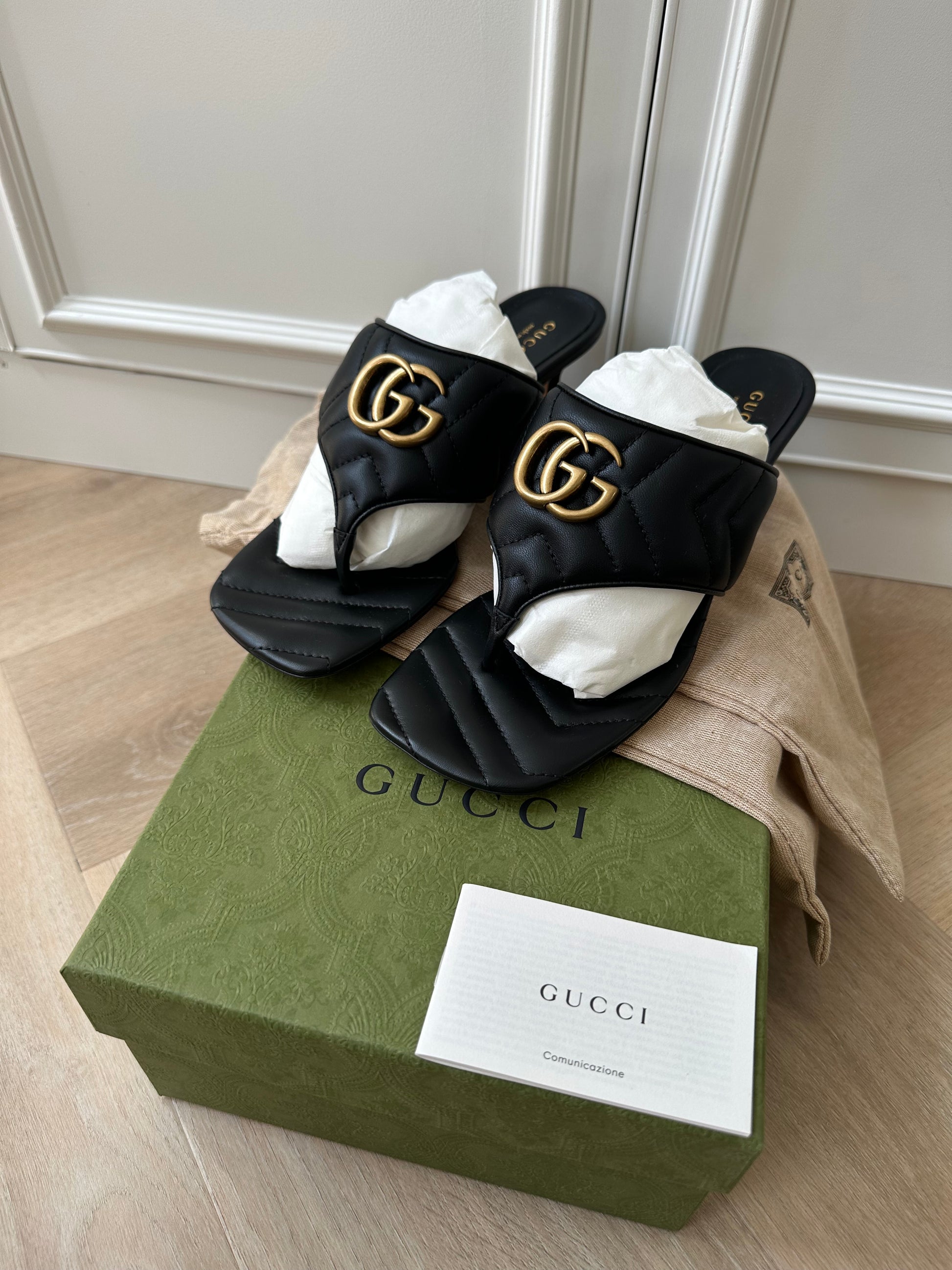 GUCCI Marmont Black Thong Sandal with Heel, size EU37